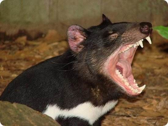 袋獾是世界上最大的食肉性有袋類,它的食性廣泛,包括小型獸類、鳥類、爬行類、昆蟲和兩棲類,而且無論死活。袋獾的頭很大,具強有力的上下頜,尖銳的牙齒使得它可以撕開鮮肉和腓骨,也是高效的食腐者。