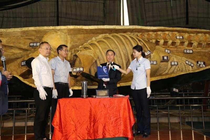2020年9月17日上午9時30分,在全國科普日即將到來之際,《巨鯨傳奇》特展“時間膠囊”安放儀式在大連金石文化博覽廣場巨鯨傳奇特展內(nèi)舉行。大連金石灘國家旅游度假區(qū)黨工委委員、管委會副主任譚向陽、抹香鯨制作的總設(shè)計(jì)師、生命奧秘博物館創(chuàng)始人、大連醫(yī)科大學(xué)博士生導(dǎo)師隋鴻錦教授、江蘇洋口港建設(shè)發(fā)展集團(tuán)副總經(jīng)理、南通洋口港港城開發(fā)有限公司董事長丁溢、如東洋口港產(chǎn)業(yè)控股有限公司副總經(jīng)理唐海建、大連金石灘旅游集團(tuán)有限公司副總裁于洪瀚、大連鴻峰生物科技有限公司副總經(jīng)理李慧有、馬學(xué)偉等領(lǐng)導(dǎo)嘉賓出席此次儀式。大連文化名人張嘉樹主持活動。