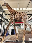 一只5米高長頸鹿做成四件塑化標(biāo)本